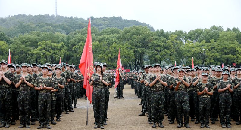 闭营式在庄严的升国旗仪式中拉开序幕,全体师生、教官面向国旗行注目礼。