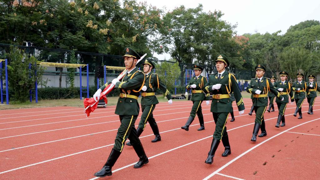 9月28日早上,学校在南山操场举行升旗仪式,庆祝中华人民共和国成立74周年。校党委副书记张宏,校党委委员、宣传部部长梁瑜,办公室、学工部、保卫处、团委等相关职能部处负责人,第19届杭州亚运会志愿者代表、青马工程学院学员代表等全校500余名团员青年参加。