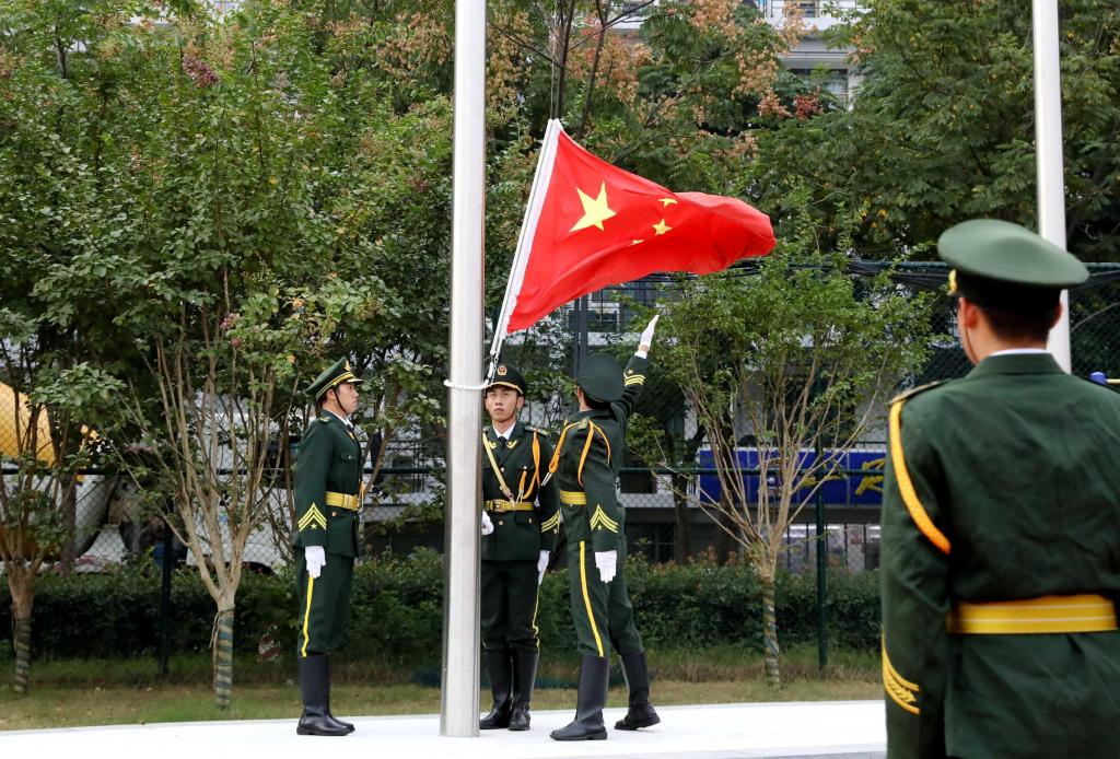 学校举行升旗仪式庆祝中华人民共和国成立74周年