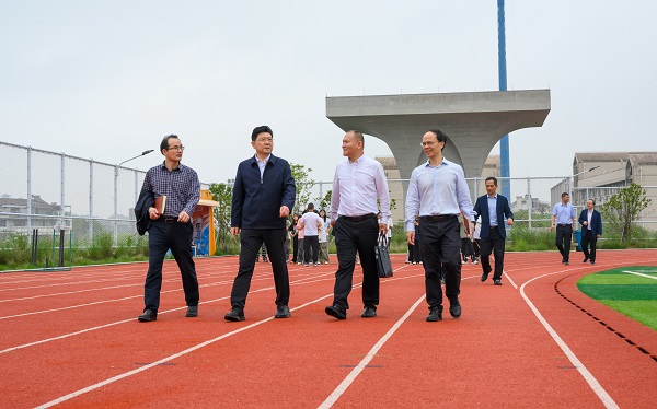 4月29日上午,校党委书记崔凤军一行走访调研学校体育场馆,校党委副书记黄坚陪同。