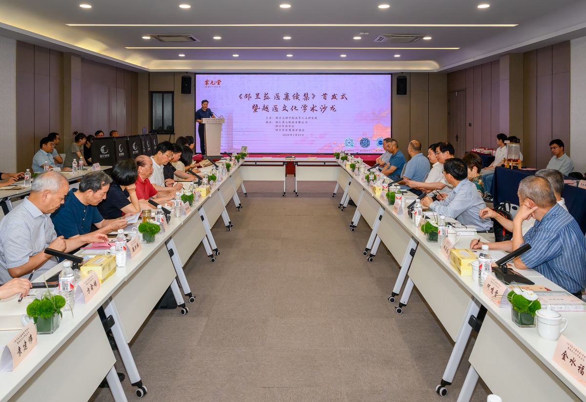 沙龙活动前,与会嘉宾参观了越医文化博物馆,并举行了《邵兰荪医案续集》新书和宣传视频发布。震元堂中医药文化传承人金百仁分享著作编撰过程。