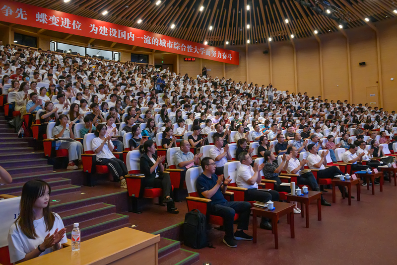 近两个小时的课程,引人入胜,全体师生聚精会神。同学们为身处千年历史文化名城绍兴而骄傲;为努力建设成为国内一流的城市综合性大学而兴奋;为崔凤军送上的祝福和期望报以热烈回应。