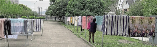 “阳光好的时候,一般一次晒3个小时,被子晒蓬松了再收走放回柜子里。今天的阳光不够明朗,得多晒会。”严凤娟说。