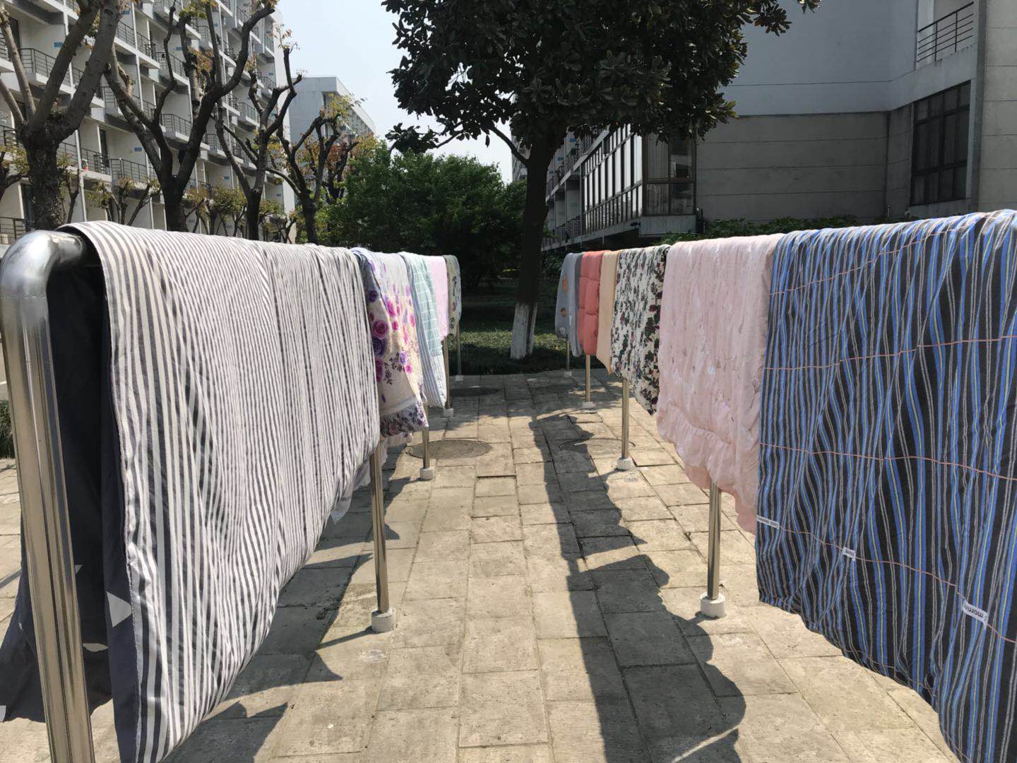阳光已续费,服务都免费。阿姨们一大早便把学生的被子一床床搬出来了。