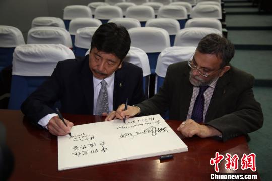 图为鲁迅、托尔斯泰后裔对话后题字留念 崔璨 摄