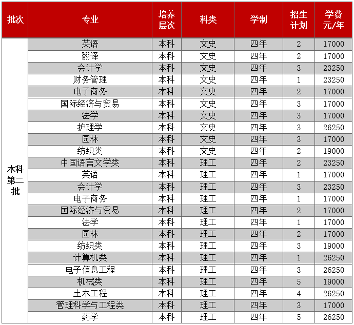 只面向浙江省招生,共有5个专业参与招生。其中面向普通类平行计划招生280人,艺术类第二批美术类120人。