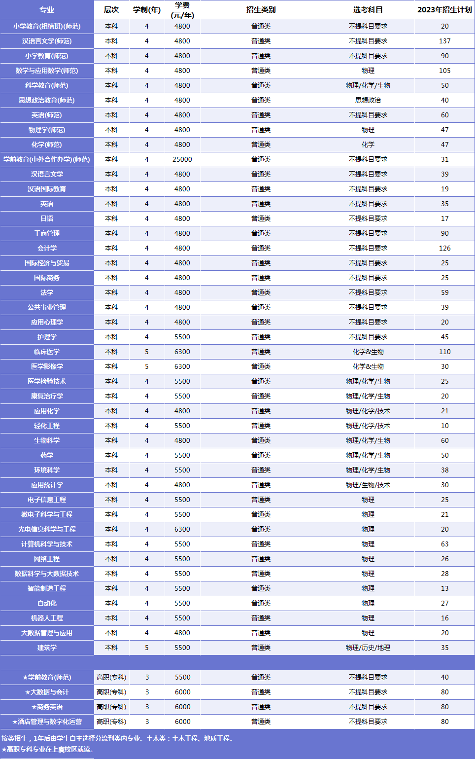 2023年我校计划招生4180人。其中本科计划招生3780人,增加150人;高职(专科)计划招生400人,与上一年持平。