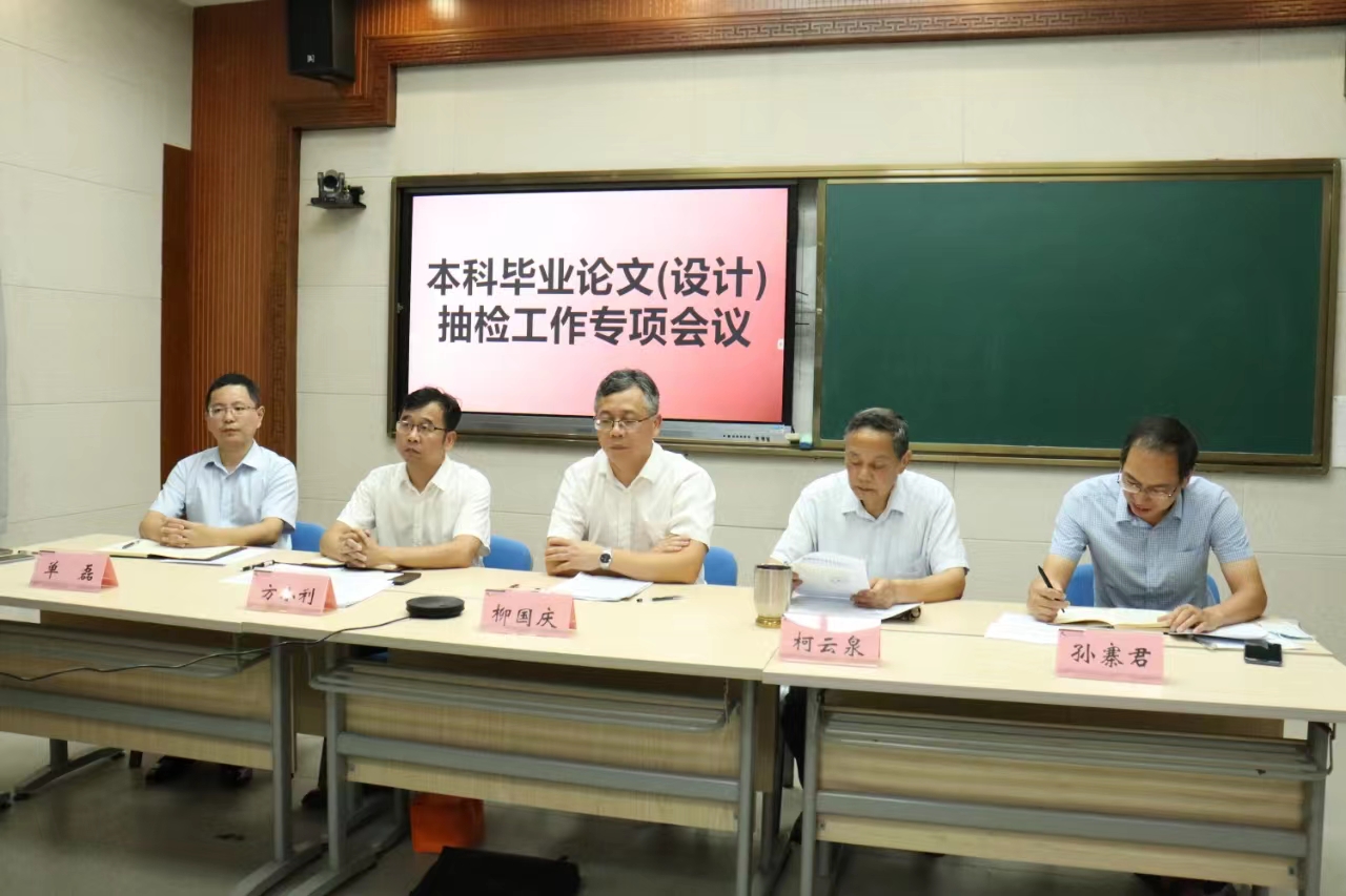 柳国庆指出,要充分认识毕业论文(设计)抽检工作对学校人才培养的重要性,要准确理解把握这次抽查工作重点和关键,要加强领导,各二级学院成立领导专班,制定科学合理的工作方案,精心组织、压实责任和强化激励,把抽检工作当做近期要事来对待。他强调,要进一步强化毕业论文(设计)工作过程管理和过程评价,每年要开展预抽检;进一步健全学校毕业论文(设计)质量保障机制,加强指导教师的指导责任和指导投入,将论文指导工作纳入年度绩效评价。