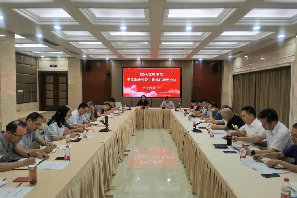 6月17日下午,我校在铁城科教馆一楼会议室召开党风廉政建设工作部门联席会议,分析研判学校上半年党风廉政建设,部署学校推动落实立德树人根本任务专项监督工作。联席会议成员单位及有关职能部门(单位)主要负责人参加会议。