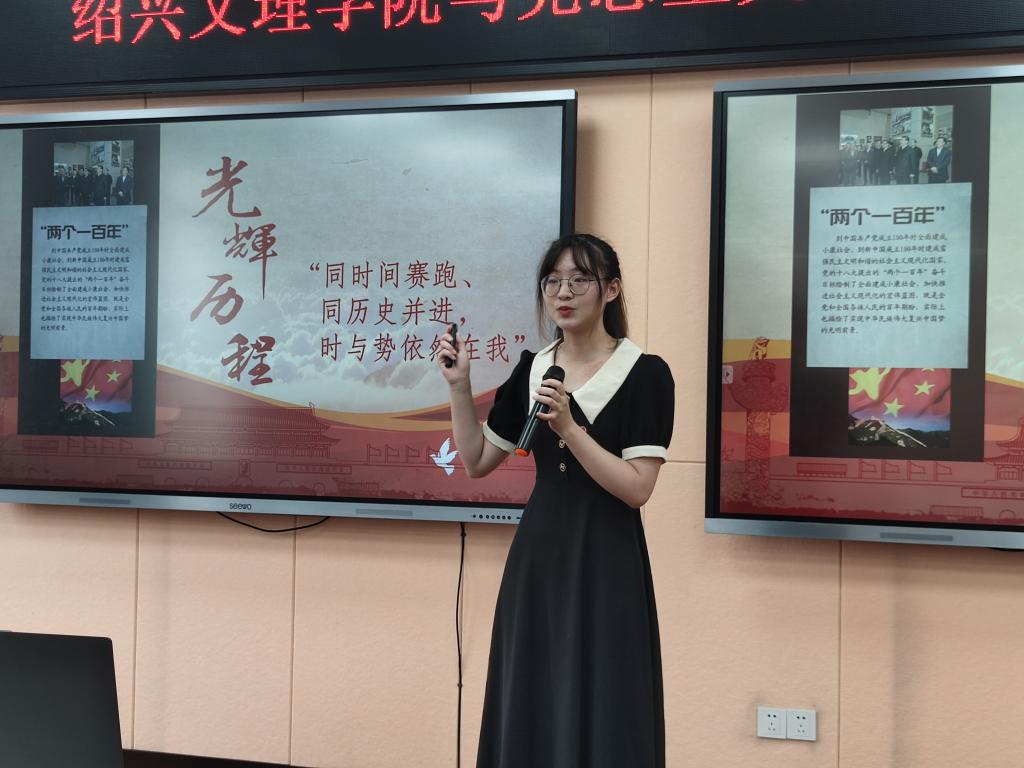 主题活动形式丰富多样。艺术学院学生党员钟丹萍带领大家合唱《没有共产党就没有新中国》《歌唱祖国》等,歌声中饱含少年们对祖国的拳拳真情气势振奋人心;校“越讲越红”大学生宣讲团员王玉瑶同学通过微课宣讲,生动再现了俞秀松壮怀激烈的革命人生,“入队、入团、入党,是青年追求政治进步的‘人生三部曲’”;青年团员赵煊、王晓霞朗读俞秀松的“红色家书”。