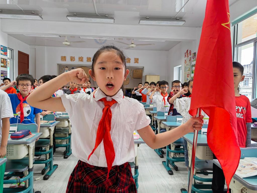 “我热爱中国共产党……准备着,为共产主义事业贡献力量!”一声声清脆嘹亮的入队誓言激荡在塔山中心小学二(一)班教室里。为庆祝中国共产主义青年团成立100周年,进一步推进绍兴市大中小学党团、队一体化建设,5月30日,马克思主义学院思想政治教育201班团支部与塔山中心小学“蓝精灵”中队联合在线上开展了“赓续红色血脉,担当光荣使命”主题活动。