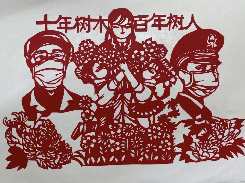 一张张精美的海报、剪纸、贺卡,以丰富的表现形式呈现出中国底蕴深厚的教育文化和杰出人物,展现了师范生技能与师德师风。