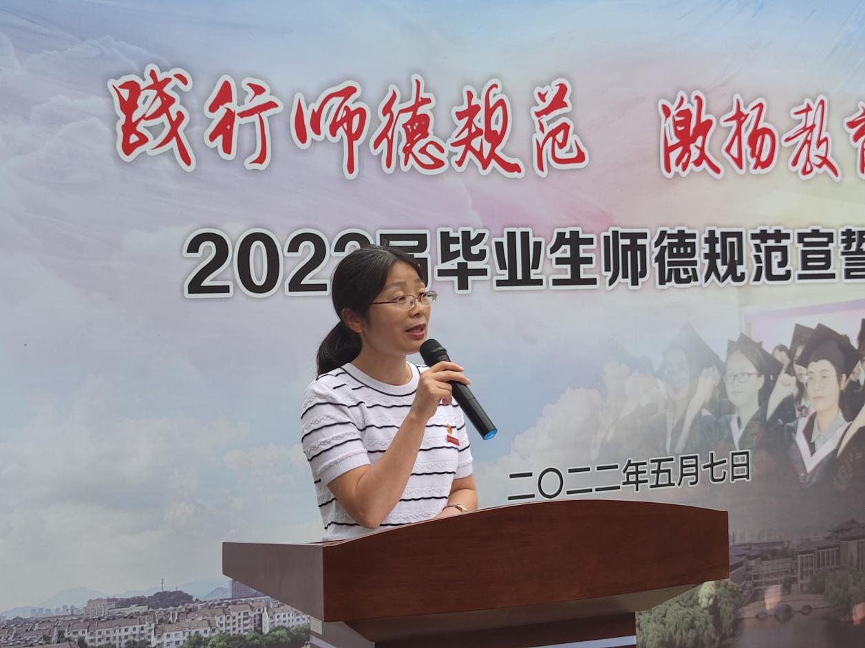 “‘生命不止,教育不息’这是我热衷于德育的决心和使命。”学院邀请了绍兴市第一初级中学教育集团副总校长、政教91级的周玉蓉作了一堂意义非凡的专题分享,并带领全体毕业生庄严宣誓。