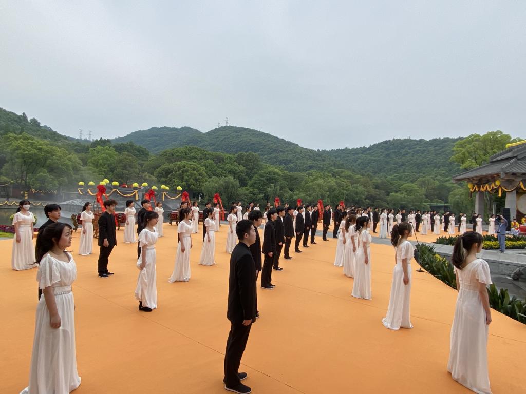 壬寅谷雨,春和景明;陵庙肃穆,松柏长青。4月20日谷雨时节,2022年公祭大禹陵典礼在绍兴大禹陵祭祀广场举行。艺术学院百名学生组成的合唱团承担了颂唱《大禹纪念歌》环节,出色完成任务,展示了我院学子良好专业素养和精神风貌。