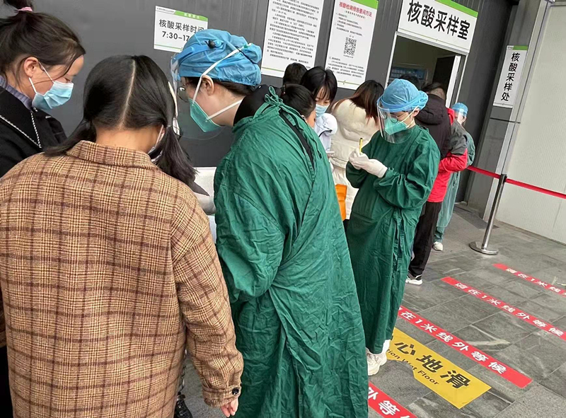 邓世清在门诊核酸检测点帮助维持秩序