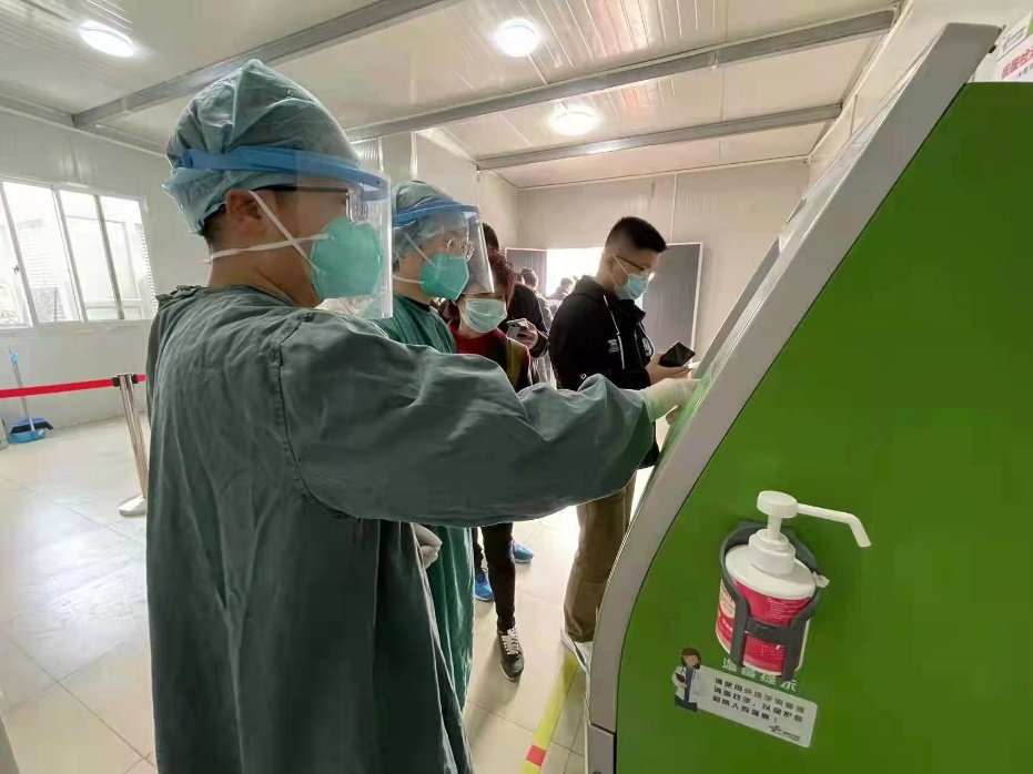 陆家樑在校附属第一医院门诊核酸检测点帮助维持秩序
