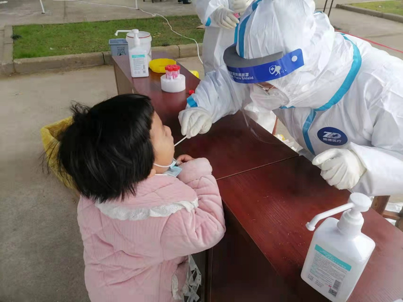 王华倩在上虞一社区核酸检测点为群众做核酸检测