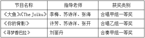 特别值得一提的是,合唱节目《大鱼》是由教师教育学院、外国语学院和医学院的40位非音乐专业的学生组成的女声合唱团完成的,这是该合唱团首次代表学校参加浙江省大学生艺术节。