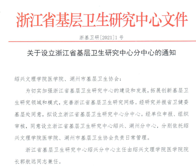 浙江省基层卫生研究中心绍兴分中心依托我校医学院设立