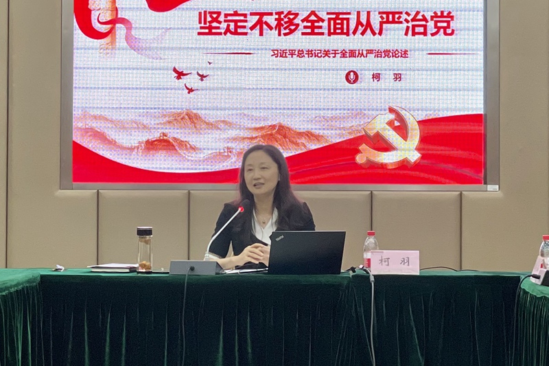 柯羽作了题为《坚定不移全面从严治党——习近平总书记关于全面从严治党论述》的报告。她从习近平全面从严治党思想的形成、基本内涵、新进展和新要求等四个方面,系统阐述了习近平全面从严治党思想。柯羽结合正在开展的党史学习教育,希望广大党员在学习党史中增强信仰信念信心:一是学习党推进马克思主义中国化的历史,增强对马克思主义的信仰;二是学习党百年奋斗的光辉历程和伟大成就,增强中国特色社会主义道路自信、理论自信、制度自信、文化自信;三是学习党成功推进革命、建设、改革的宝贵经验,增强对实现中华民族伟大复兴中国梦的信心;四是学习党的历史上正反两方面的经验教训,增强对党中央的信赖。