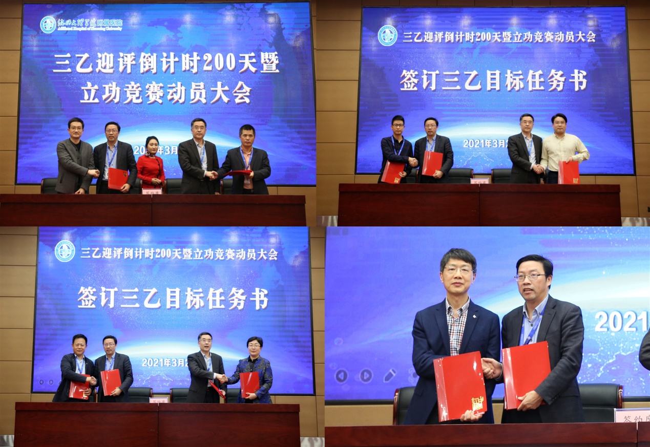 会上,张伟阳、胡学建与七大迎评专业组的分管领导签订创“三乙”目标任务书,并与职能处室、临床科室、医技科室代表签订创“三乙”工作责任书。