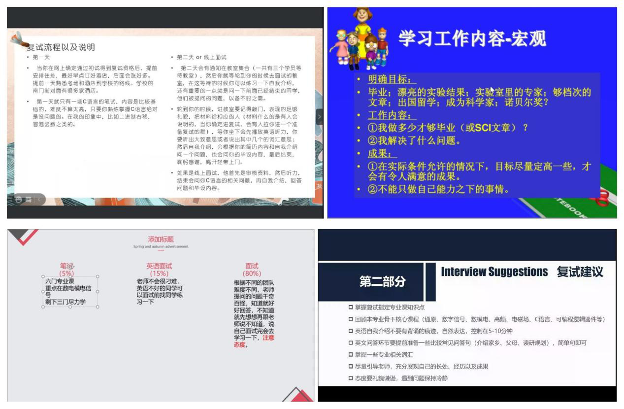 校友传帮带,积极汲取经验共享资源。各专业借助考研交流微信群、QQ群等,打通地域信息交流障碍,全力做好历届读研校友与本届考研学子经验分享工作,帮助复试学子及时获取所报考院校的复试准备、调剂等内容。此外,学院在线上召开了多场优秀校友考研复试经验分享会,会上考研学子就复试、调剂等内容踊跃发言、积极提问,优秀校友倾囊相授、精心指导。