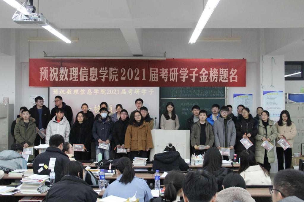 12月23日下午,在2021年硕士研究生考试即将来临之际,为帮助考研学子缓解压力,增强信心,数理信息学院在综合楼A203考研教室召开考研冲刺慰问会。学院各专业考研团队导师组导师、各专业辅导员、全体2017级考研学子参加会议。