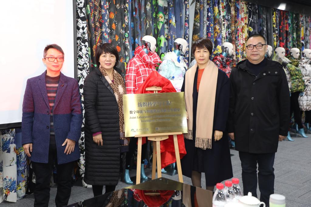开幕式上,方优美与纺织服装学院院长钱红飞为校企双方共建的纺织科学与工程“数字印花与智能化技术联合实验室”揭牌。