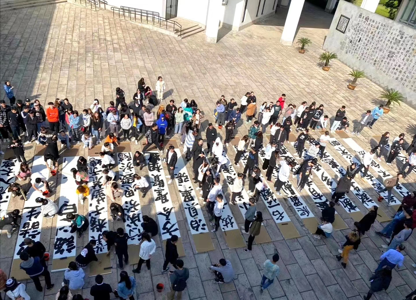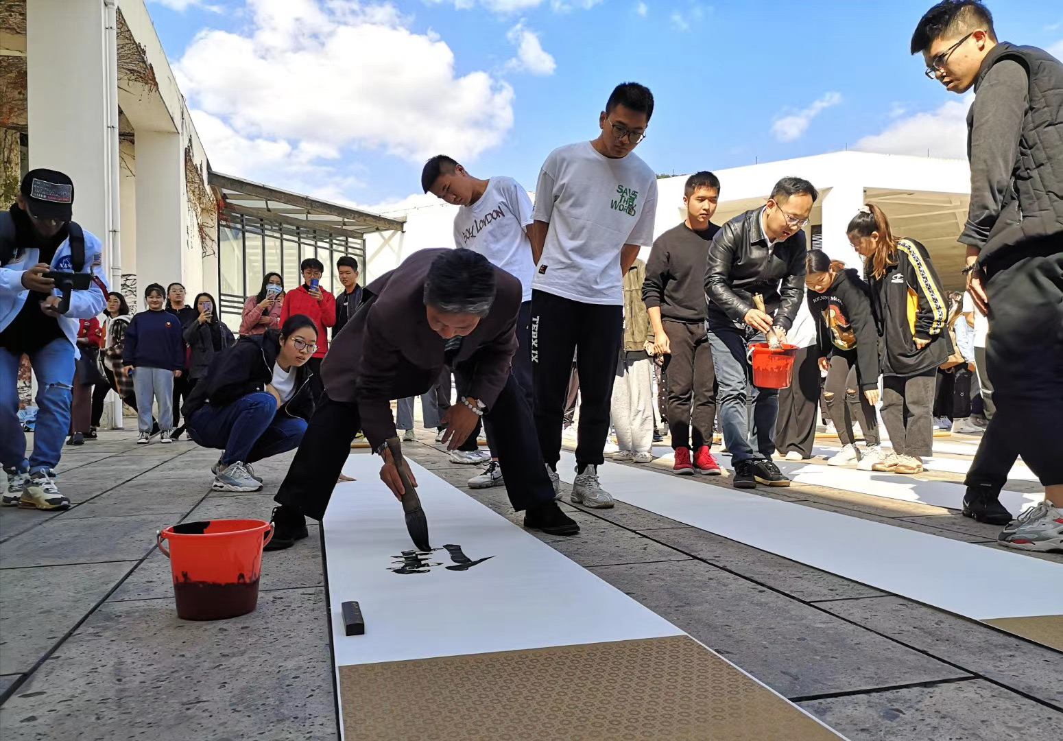 11月5日,因疫情影响而延后的“畅写阳春”活动在兰亭书法艺术学院照壁前顺利举行。学校相关职能部门负责人,兰亭书法艺术学院师生及学校留学生参加活动。