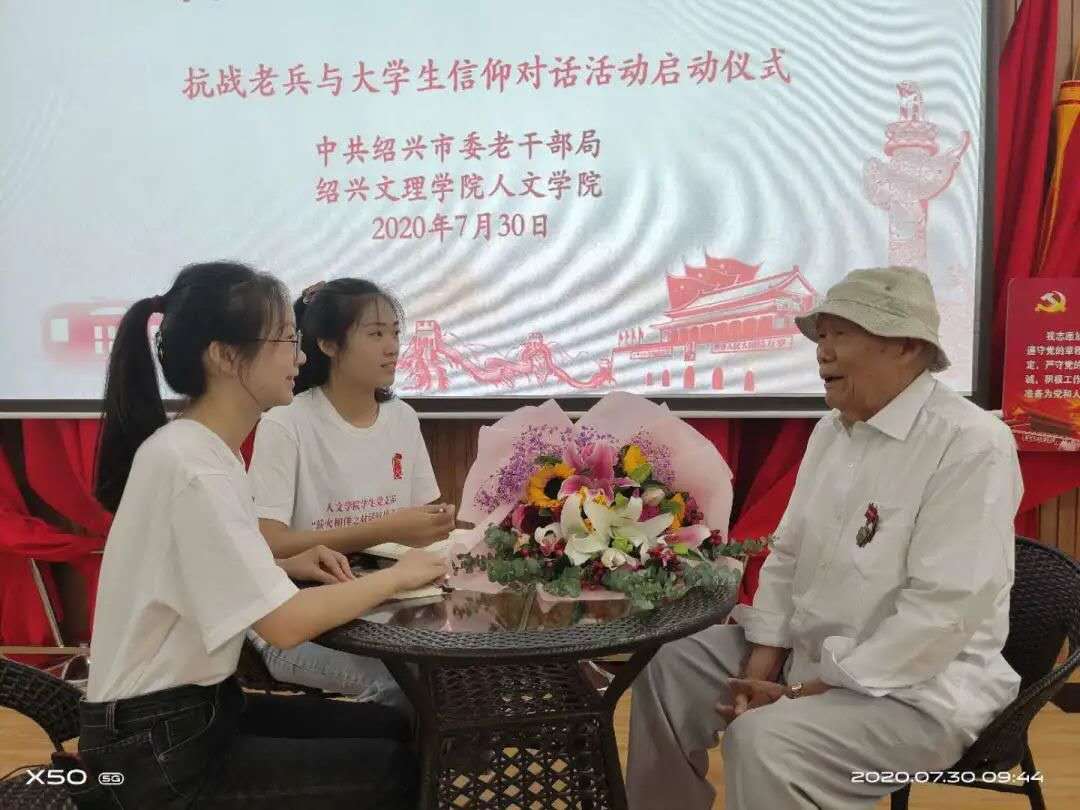 为更好传承、弘扬以爱国主义为核心的伟大民族精神,7月30日上午,人文学院学生党支部在绍兴市老干部活动中心举行“薪火相传之抗战老兵与大学生信仰对话”启动仪式。市委老干部局副局长殷利剑、新四军研究会会长韩茂仁、人文学院党员师生代表、绍兴市新四军研究会代表、绍兴市老年大学学员代表参加仪式。