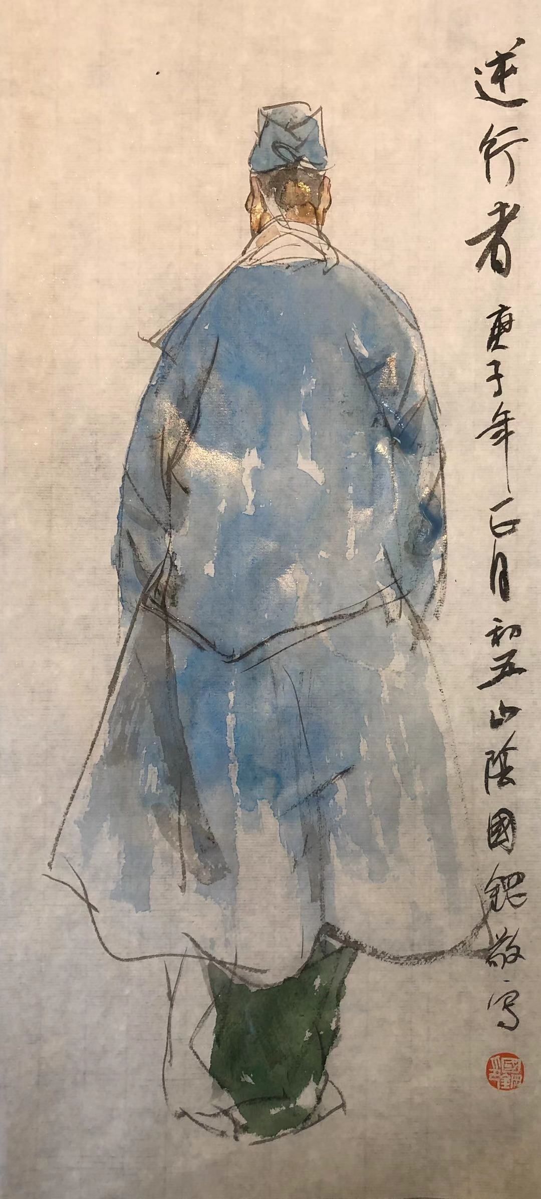 受到医务人员精神感染,吕国钢连夜作画。作品内容言简意赅、短小精悍,人物生动鲜活。如《逆行者》,一个背影便表达出白衣天使直面危难时,如坚山盤石般给人无穷力量。他把钟南山院士画成岳飞的样子,铁甲盾牌,一手警告人们不要食用野生动物,一手持盾保护人民生命健康安全。“钟院士八十五岁高龄还坚守在一线战场,令人感动敬仰,我们忘不了十七年前的那场非典时钟院士的奋斗与努力,他是人民健康的真正卫士,在我心目中他是民族的英雄。”吕国钢说。