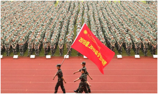 9月3日上午,元培学院2018、2019级学生军训开营式在田径场隆重举行。军训团政委、省陆军预备役步兵师杨建富中校,元培学院全体领导班子成员,校学工部相关负责人等出席开营式。元培学院学生军训领导小组成员,各分院书记(副书记),2018、2019级学生军训全体学员、教官、指导员参加开营式。