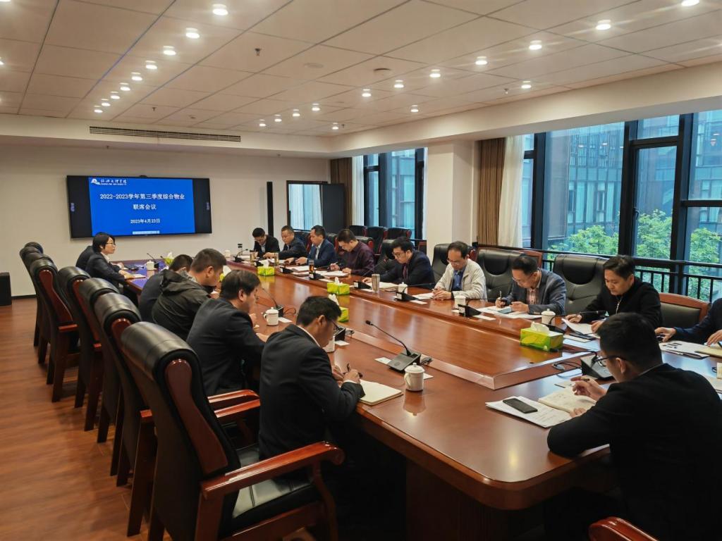 为进一步加强学校综合物业的考核管理工作,4月23日上午,学校召开2022-2023年度第三季度综合物业联席会议,副校长陈均土、资产与后勤管理处、保卫处、学生处、校园建设处相关负责人及苏东吴物业公司管理团队参加了会议。