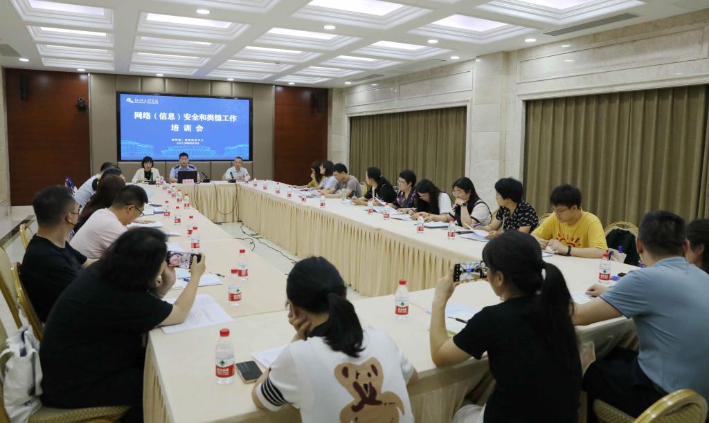 为进一步加强我校大学生信息安全与校园网络舆情教育,6月26日下午,校网络(信息)安全、网络舆情工作培训会在铁城一楼会议室召开。宣传部(网络信息安全管理与新闻中心)、信息技术中心,各二级学院网络(信息)安全、网络舆情工作分管负责人,软件正版化工作执行人员,二级学院网评员,校级网评员等参加会议。