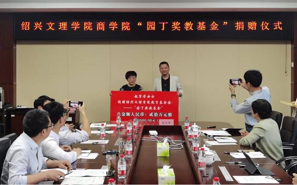 地方服务与合作处副处长、校友办副主任夏婷与赵军芳校友签订捐赠协议。商学院党委副书记周建强介绍了“园丁奖教金”的基本情况,党委书记陈伟鸿就如何使用好基金,助推学院高质量发展作了表态发言。校教育基金会副理事长姚博主持会议。