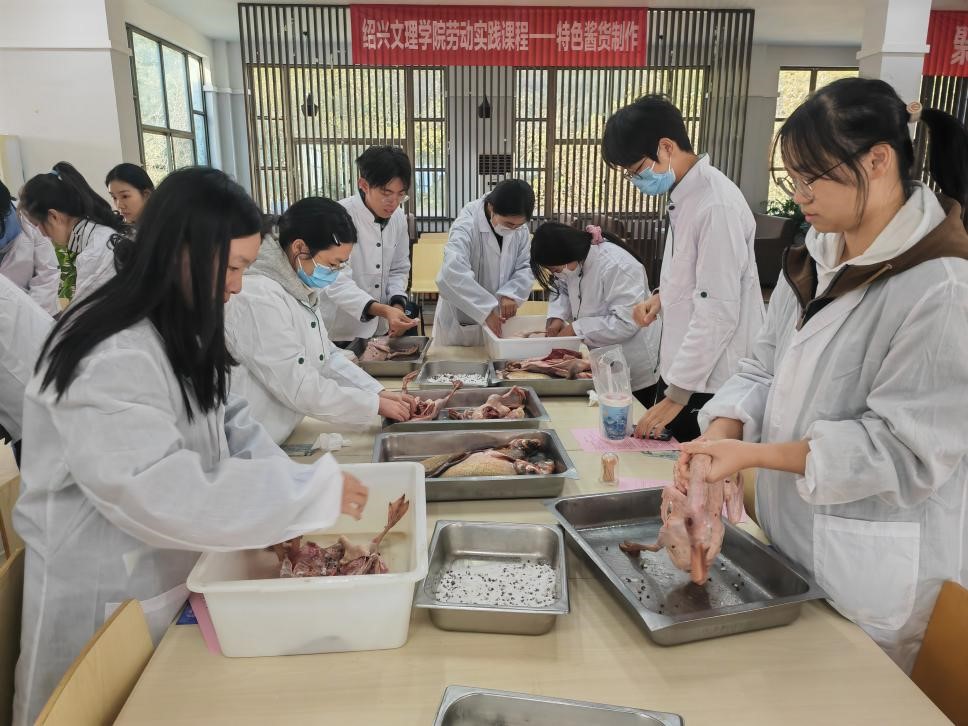 “我学习了如何制作酱鸭和酱鱼。整个过程,我发现这样的传统手艺需要我们花费大量的时间和努力,但制作完成后的味道特别美味。”化学化工学院应用化学221班朱衎同学参加完活动这样说到。这次活动不仅帮助学生了解了绍兴传统美食的制作过程,感受传统美食的魅力,同时体会了劳动实践带来的成长与收获。