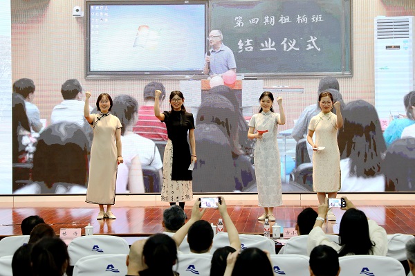 教务处处长方小利宣读第十二期“祖楠班”校内外导师、班主任聘任文件。第十一期学生代表刘珈辰、张沉樱、虞舒雅、李春煦等同学上台汇报学习成果。第十二期学生代表冯煊茹发言。