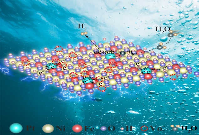 该研究的核心成果在于提出了一种新型催化剂设计思路:将铂原子通过铂-镍电子桥锚定在含氧缺陷的镍铁层状双氢氧化物上,从而有效降低铂的价态,改善了其对氢的吸附能力。这一机制与传统的铂-氧键结合不同。研究表明,镍铁层状双氢氧化物中的氧空位不仅促进了铂原子电子转移,而且提高了镍的亲水性,进而降低了水解反应的能垒。这使得该催化剂在电催化析氢反应中表现出了极低的过电位,且其质量活性分别是商业Pt/C催化剂的51.5倍和23.7倍。该催化剂不仅提升了析氢反应的效率,还展示了通过合理设计金属催化剂的配位环境和电子结构来增强催化性能的巨大潜力。