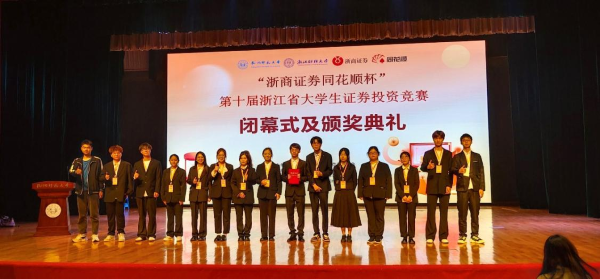近日,第十届浙江省大学生证券投资竞赛在杭州师范大学落下帷幕。全省78所学校的1312支团队参赛,经过初赛、复赛、决赛等环节后,共评出550支获奖团队,其中一等奖110名,二等奖153名,三等奖287名。商学院(法学院)派出18支队伍参加团队赛初赛,9支队伍成功进入决赛,最终获一等奖1组,二等奖4组、三等奖4组;70名同学参加个人赛,最终3人入围决赛,获二等奖1名,三等奖2名。获奖数量和获奖率均实现新突破。