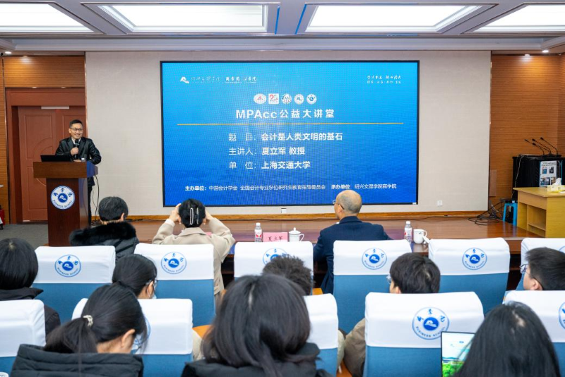 本次MPAcc会计名家公益大讲堂邀请到财政部会计名家、全国会计专业学位研究生教育指导委员会委员、教育部长江学者特聘教授,上海交通大学二级教授、博士生导师夏立军教授为师生作“会计是人类文明的基石——探索会计在人类进化中的关键作用”主题讲座。
